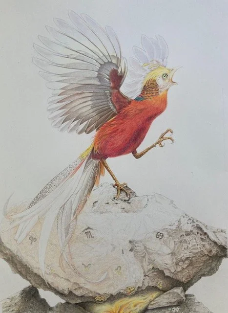 As I worked to map out the texture of the lava rock, I saw the big heart shape beneath the phoenix which beautifully illustrated the belief that unconditional Love is the launching pad to freedom.